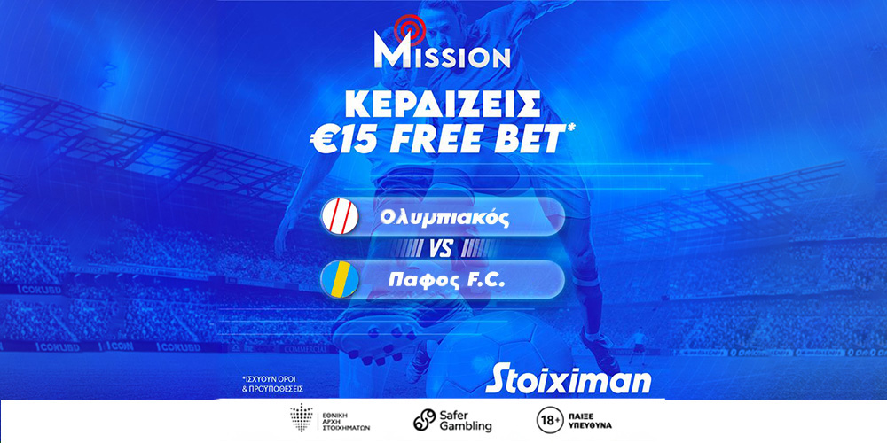Stoiximan Mission με €15 Free Bet στο Ολυμπιακός Πειραιώς-Πάφος