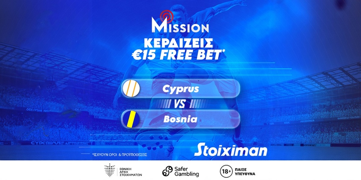 Stoiximan Mission με €15 Free Bet στο Κύπρος-Βοσνία & Ερζεγοβίνη