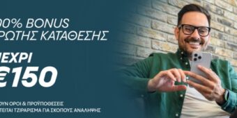 Ένα μπόνους έως 150€ σας περιμένει μόλις προβείτε στην πρώτη σας κατάθεση. Για να μπορέσετε να κάνετε ανάληψη των κερδών, θα πρέπει να τζιράρετε το ποσό της κατάθεσης και του μπόνους τρεις φορές.